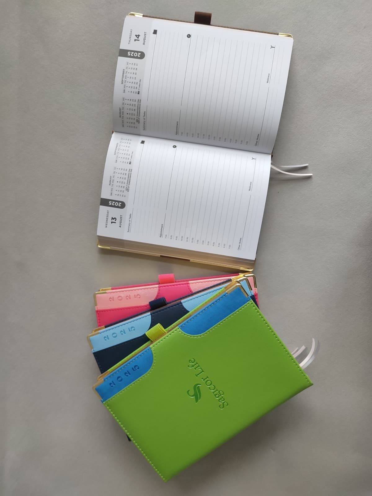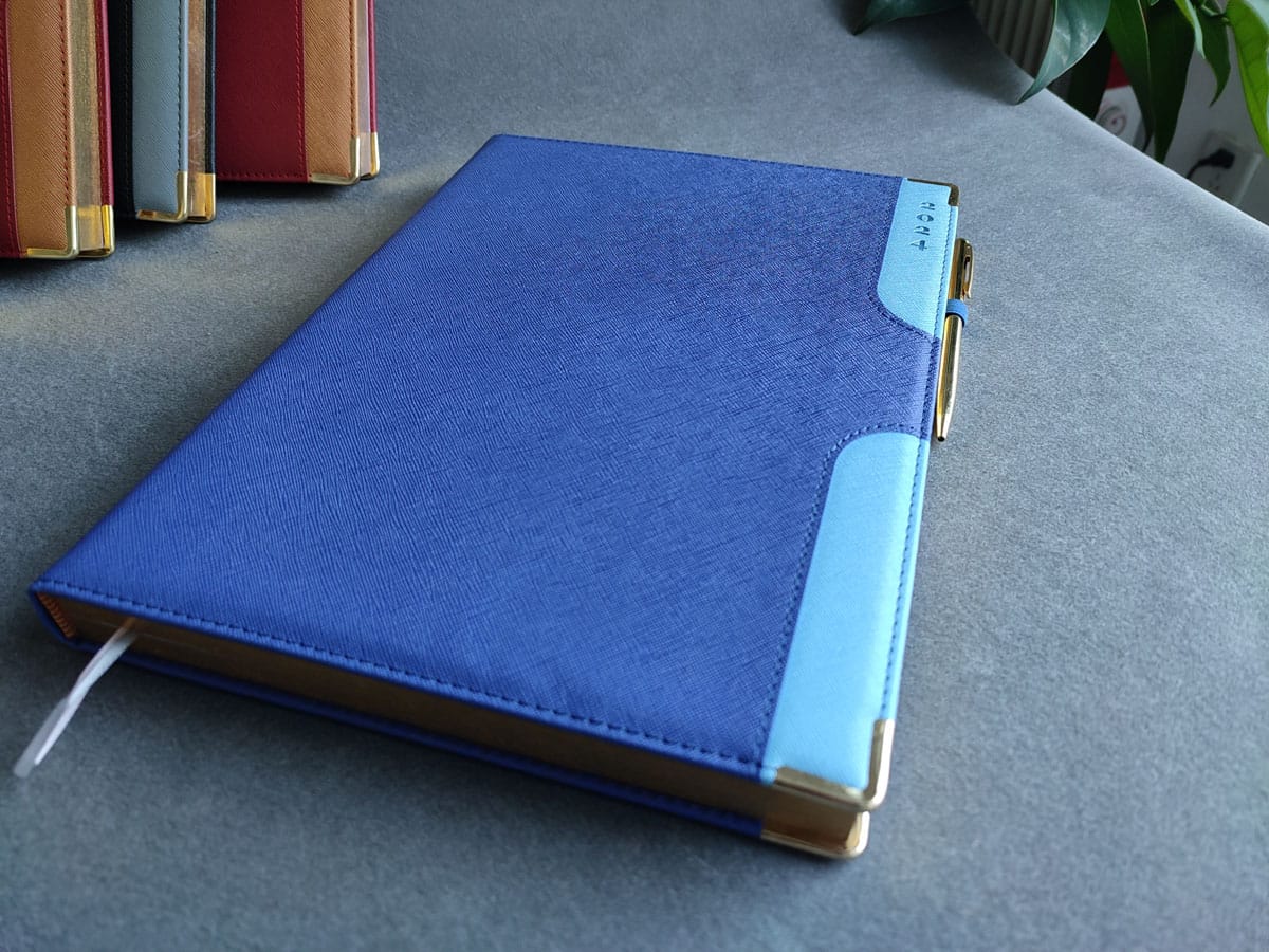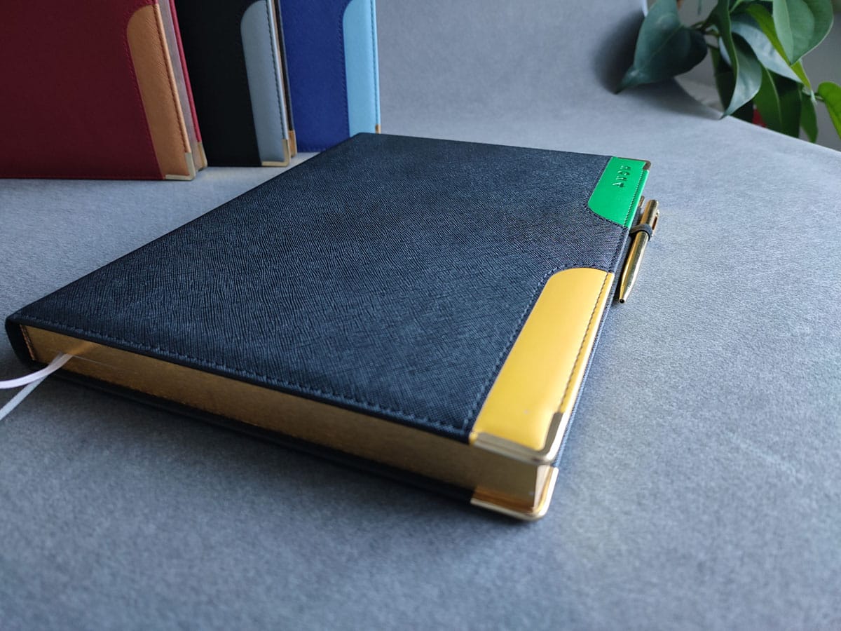 Features: PU Linen Cover | 2 Bookmarks | Gold Edges | Gilten Sides | Goldie Pen