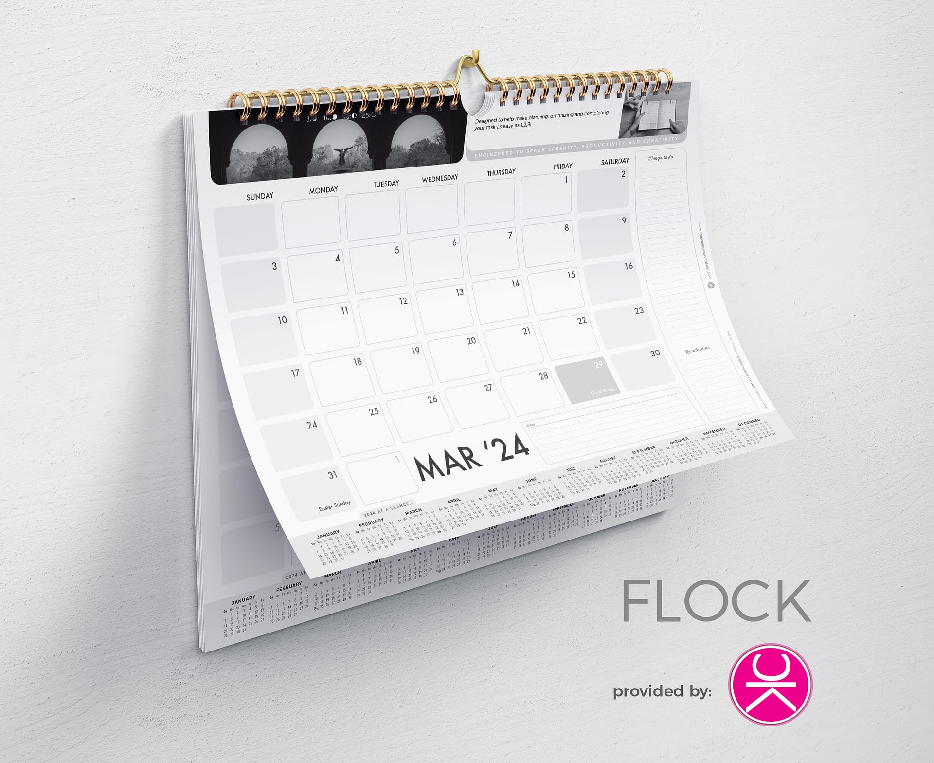 Features: 12 Landscape Sheets Printed on Matt Paper in Black & White | Padded | Punched to Hang as Desired